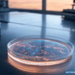 Visual representation of the structure of low-density amorphous ice. Many tiny crystallites (white) are concealed in the amorphous material (blue). Credit: Michael B Davies, UCL and University of Cambridge “Space