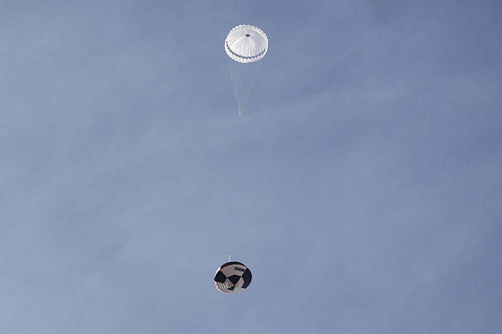 Led by Airborne Systems in coordination with NASA’s Langley Research Center and NASA’s Ames Research Center, the drop test on Feb.11, 2026, in Eloy, Arizona, marked the first trial of a full-scale Dragonfly entry, descent and landing system parachute, replicating the Titan descent sequence. Airborne Systems North America
