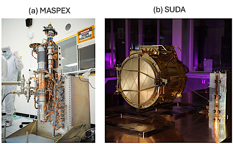 This instrumentation is carried on the Europa Clipper mission. (a) MASPEX (Mass Spectrometer for Planetary EXploration) measures volatile and organic molecules, including amphiphilic lipids in Europa’s sputtered exosphere as well as ocean plumes. (b) SUDA (SUrface Dust Analyzer) is a dust/ice mass spectrometer, analyzing salts and organics in grains. The results would possibly support the lipid world origin — Life