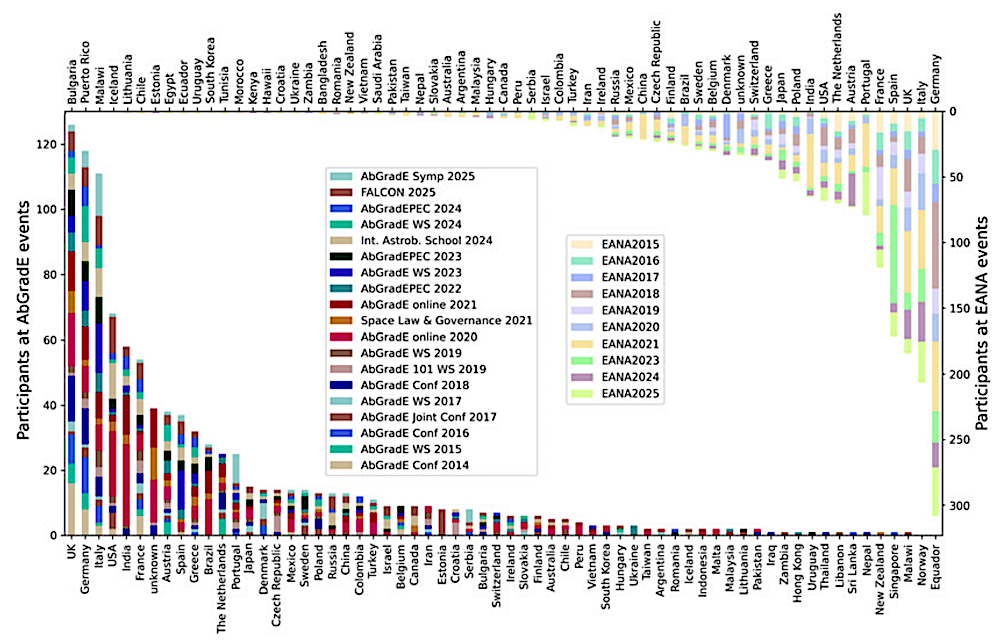 The EANA Executive Council consists of national representatives from currently 21 European (and affiliated) countries with active astrobiology groups, networks or societies, as well as representatives of the early-career AbGradE network. The EANA network and especially the Executive Council therefore directly promote a broad and diverse representation of many career stages as well as nationalities including normally underrepresented countries.