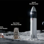 An artist’s impression of an Apollo-era lunar module (left) and moon landers being built by Blue Origin (center) and SpaceX (right). Graphic: NASA Office of Inspector General NASA is working
