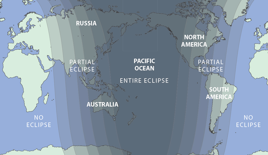 The Moon will pass through the Earth’s shadow between 08:42 and 14:24 UT, creating a total lunar eclipse. The eclipse will be visible any location where the Moon is above the horizon at the time, including from the Americas, Russia, Asia, Antarctica, Oceania and Alaska.
