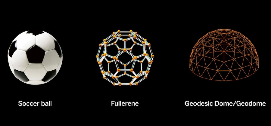 The 60 carbon molecules in the “buckyballs” are arranged at the vertices of hexagons and pentagons, resembling the design of a soccer ball or a geodesic dome. Credit: Western Communications