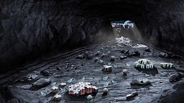 Conceptual diagram of future base camp by multiple robots in Lunar underground cave