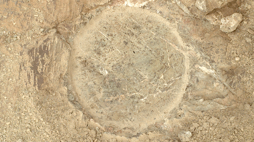 The target “Peachflya,” abraded on sol 1618, revealed clasts of different mineral compositions. This could mean the rock is a breccia formed from fragments of even older materials that were broken up, transported, and cemented together – possibly during an impact in Mars’ distant past.