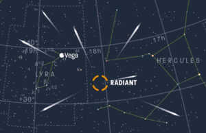 Radiant: Just inside the constellation of Hercules, near bright star Vega in Lyra