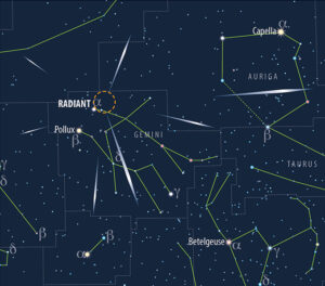 The radiant of the Geminid Meteor Shower is close to the bright star Castor.