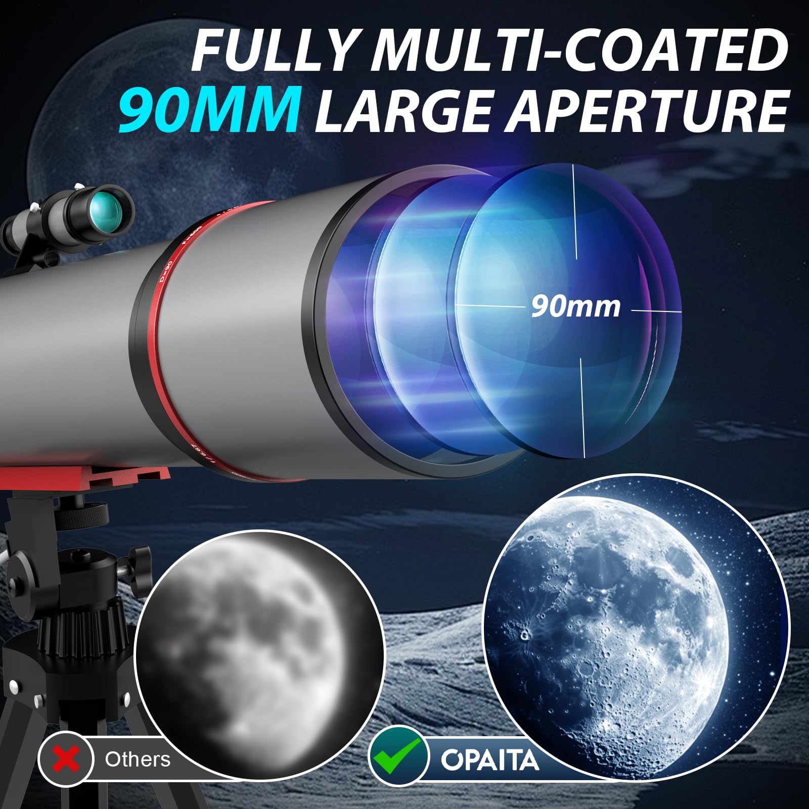 Opaita Telescope for Adults High Powered – 90mm Aperture 600mm Refractor Telescope for Kids & Beginners – Portable Astronomy Telescopes Profesional with Phone Adapter Tripod Carry Bag