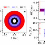 Image of AB Aurigae in hydrogen-alpha (Hα) light, showing the newborn protoplanet AB Aurigae b clearly detected about 0.6”almost due south of the central star. The central 0.3” region around