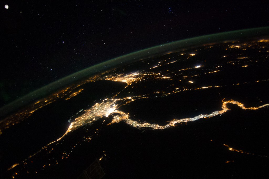 The sun shines above Earth’s horizon as the space station orbited 264 miles above the Canadian province of Quebec.